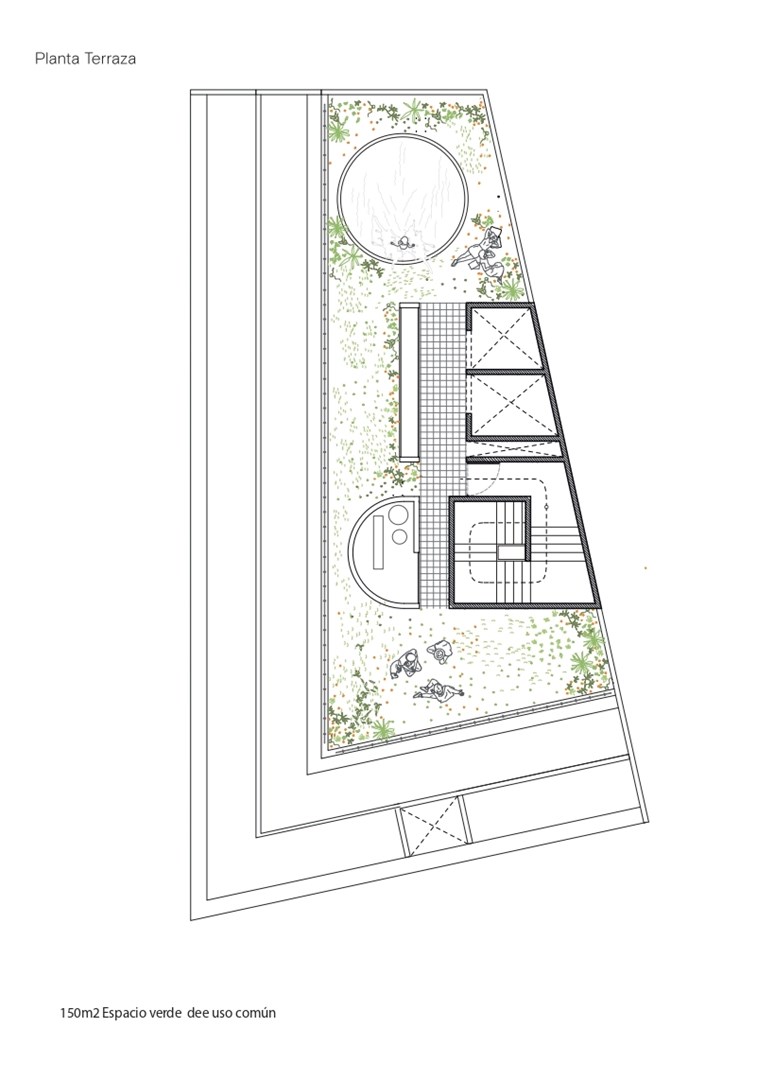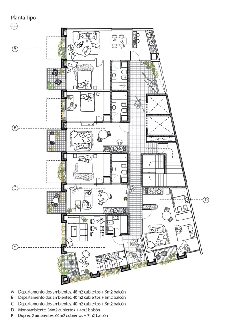 Concepción Arenal 4001 es el nuevo proyecto del estudio BAAG. El edificio fue proyectado como condensador de la vida urbana del barrio, pretendiendo aportar al entorno cultural, gastronómico y social emergente del barrio de Chacharita. La planta baja del edificio propone una relación directa con la ciudad, sumando, a través de la actividad gastronómica, un lugar de encuentro dentro de la matriz de actividades en expansión que el barrio ofrece. En el primer piso se encuentra el área de unidades destinados a estudios y oficinas, articuladas con el espacio público por medio de una galería de acceso y un corredor exterior que otorga un fuelle con la ciudad. A partir del segundo piso, el edificio contiene las unidades de vivienda permanentes o temporarias articuladas por diferentes tipologías. Unidades de un ambiente hasta cinco conforman el cuerpo edilicio. Tipologías en dúplex materializan el vértice del volumen construido. Un corredor abierto dentro del edificio permite el ingreso a todas las unidades, favoreciendo la iluminación y la ventilación cruzada de las diferentes tipologías. Áreas de permanencia y encuentro son parte del sistema de circulación. En el remate del edificio se proponen espacios verdes, articulados con los bio-corredores de la ciudad, para las actividades comunes y de convivencia entre humanos y otras especies. BAAG, Buenos Aires Arquitectura Grupal, es un estudio que indaga en las nuevas formas de habitar y registra los ecosistemas locales, revalorizando su aporte a las diferentes formas de apropiación y habitabilidad de las ciudades. La oficina entiende a la arquitectura como práctica y pensamiento crítico, proponiendo producir, investigar, ensayar e innovar a partir del trabajo colectivo. BAAG ha realizado proyectos institucionales y de viviendas, proyectos de investigación, instalaciones culturales y concursos públicos. También ha sido invitado a brindar conferencias, realizar cursos y workshops en instituciones y universidades nacionales e internacionales. El espíritu grupal del estudio, permite trabajar en conjunto con diversos arquitectos y profesionales de otras disciplinas, realizando trabajos experimentales, concursos y charlas debate, apostando a construir y sistematizar la aplicación constante de un pensamiento crítico. FORMA DE PAGO: Anticipo 40% + 30 cuotas fijas USD. * Todas las características, vistas y amenidades están sujetas a cambio sin necesidad de notificación previa. Todas las medidas y superficies enunciadas son aproximadas y únicamente se indican de manera orientativa, quedando sujetas a eventuales cambios de acuerdo a las dimensiones que surjan del plano de subdivisión y mensura. Todas las imágenes y videos son meramente ilustrativos y toda la información provista en este sitio web no constituye ningún tipo de obligación contractual entre las partes. Ceratti Propiedades CUCICBA 8699 CMCPSI 6928
